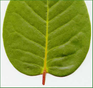 Leaf base with a heart shape. Rhododendron williamsianum.