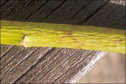 Le dessèchement est particulièrement visible sur le bois de la bouture qui présente une surface ridée.