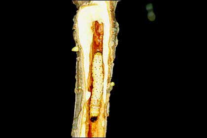 Ce n'est qu'à un peu plus de 10 cm au-dessus du trou que je découvris cette chenille xylophage.