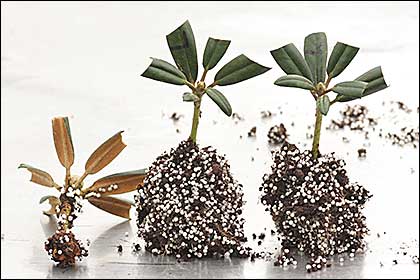 En conclusion, sur des boutures qui sont difficiles à raciner, l'hormone liquide semble présenter une meilleure efficacité. Elle n'est pas nécessaire sur des boutures réputées faciles : toutes les azalées à feuilles persistantes, la plupart des rhododendrons lépidotes (qui portent des écailles) et un très grand nombre de rhododendrons élépidotes que votre expérience et (ou) la fréquentation du site "rhododendron.fr" vous apprendra à reconnaître.