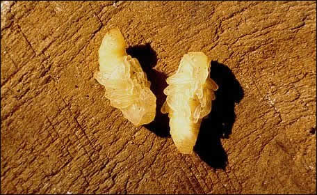 These pupae are the step between the larvae and the moths. They are pale white nearly translucent.