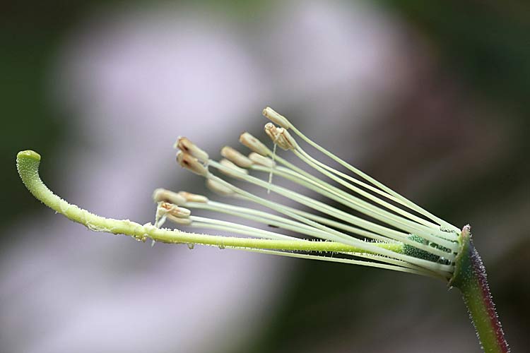 Pistil d'environ 3 à 5 cm de long, ovaire conoïde de 5 mm de long, intensément couvert de glandes qui sont presque acaules, 10 chambres.
